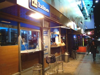 Beforehand I got a quick bite at bite. It’s a quirky outdoor food kiosk that juts out onto Lafayette Street and Bleecker. There are a few bar stools under a heat lamp on the sidewalk, but no indoor seating.