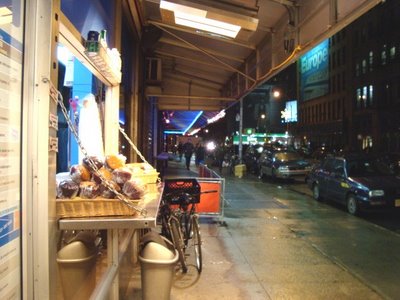 6. e: C’mon down! Bring gobs of cash.sid: When the weather gets THAT bad, it becomes strictly a take-away place. But if there’s no precipitation, you can actually sit quite comfortably under the lamps. And it’s a primo spot for people watching!