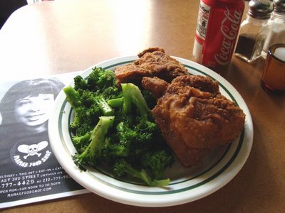 This is Mama’s Food Shop on East 3rd Street and Avenue B in the East Village. I was visiting my old neighborhood the other night and was glad to see it still in business. I remember when it first opened and how happy I was to have decent fried chicken just three blocks away.
