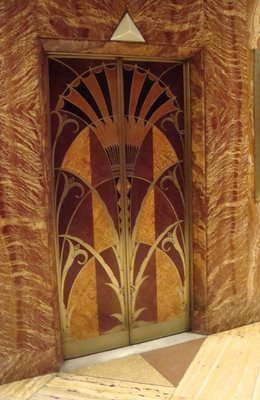 The elevator doors have beautiful inlaid wood. The interiors are equally ornate but I couldn’t get past the security guard to get a shot. Before 9/11 you were free to stroll in an out of any building to study the design but now, everything is on lockdown. It’s a shame. The terrorists fucked up my shit.