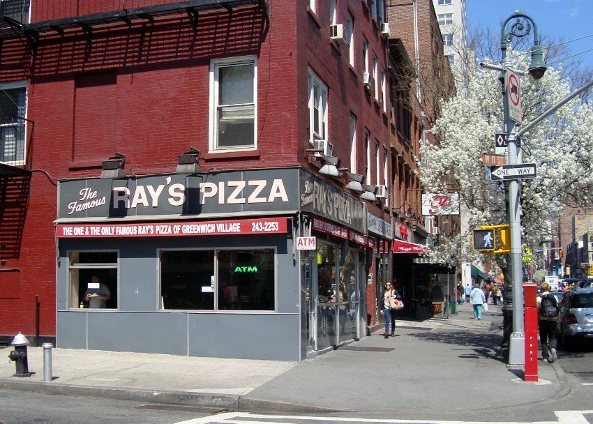 …is the best pizza parlor in the city. It’s a tiny runt of a joint. Typically, the four or five tables are all occupied and you have to stand at the counter. But standing with a slice of Ray’s pizza beats the living hell out of sitting in any other parlor.