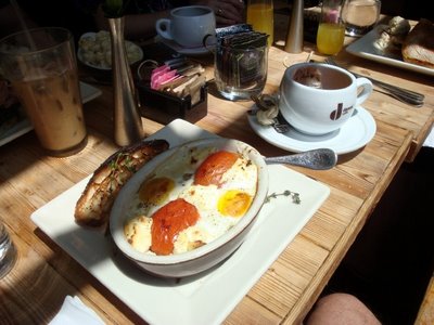 For brunch I had baked eggs at Bocca Lupo, a swell little cafe in Cobble Hill. I didn’t know you could bake eggs but here they are. Were.