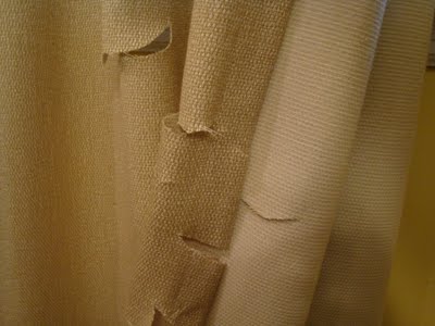 The first step in dress design is, of course, cutting cloth. And since they look like bolts of unspooled fabric, why not start on our priceless dining room curtains? Just look at those lines! They’re perfect. Here’s the left curtain: