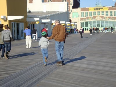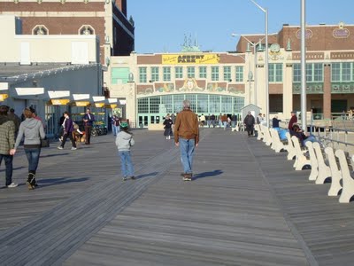 We visited the boardwalk in Asbury Park. It got pretty busy as the afternoon progressed, but nothing like in July. 7-Year Old Daughter brought her scooter and I brought my skateboard. We cruised up and down the boardwalk. She yelled at me again about not having a helmet. I’m Mr. Bad Example.