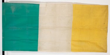 8. UB: You miss my point. I appreciate the human fondness for symbols. They are unifying (or dividing) and people always want to belong to “something”.But the Irish tricolour? Is THE flag? I’m not convinced, based on what I’ve read of Irish history. One of the (many) Irish songs of rebellion I listened to growing up had as the refrain, “Wrap the green flag ’round me boys!” That doesn’t sound like “Wrap the green white and orange flag ’round me boys!”So, whose flag is it? The tricolour was presented as a gift in 1848 to Thomas Francis Meagher from a small group of French women sympathetic to the Irish cause. It was recognized as the national flag after the ’16 Rising. Yet today it has no status in Northern Ireland.So, if this flag truly represents powerful symbolism to the Irish people, then it belongs to the people of Ireland. How did it come to be where it is now? Theft? Anyone bidding on stolen goods should be ashamed of themselves. Give the flag back to its rightful owners. Auction be damned.
