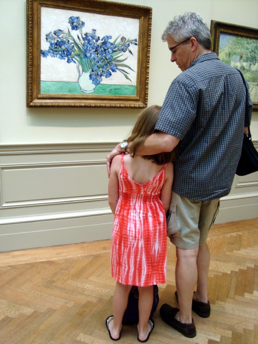 What’s a trip to the Met without visiting some old friends? Take a look at this photo and compare it to the one in my banner. She grows! The background on van Gogh’s irises was originally painted a pale rose, but over the years the pigment has faded out of the paint and now it’s a chalky white. The original color can still be seen along some of the edges if you get close enough.