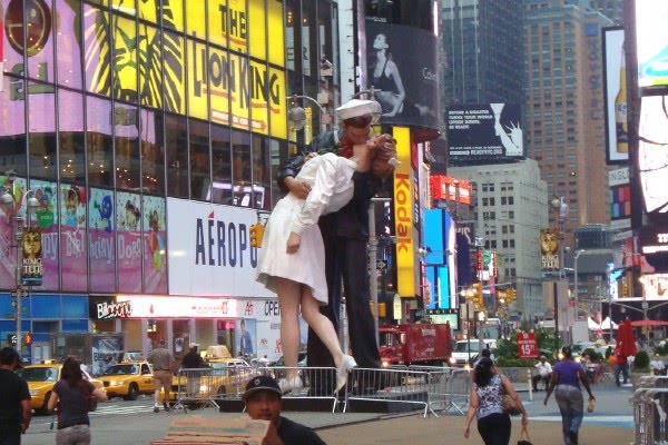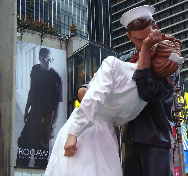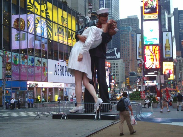 It’s a replica of the famous photograph taken by Alfred Eisenstaedt of a sailor and nurse kissing to celebrate the end of World War II. It was taken on August 14th, 1945—65 years ago tomorrow.