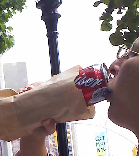 I was sitting on a park bench having my lunch and this lady sat down next to me and cracked open a Budweiser tall boy. I don’t suppose there’s anything wrong with drinking a Bud at 11:40 a.m.