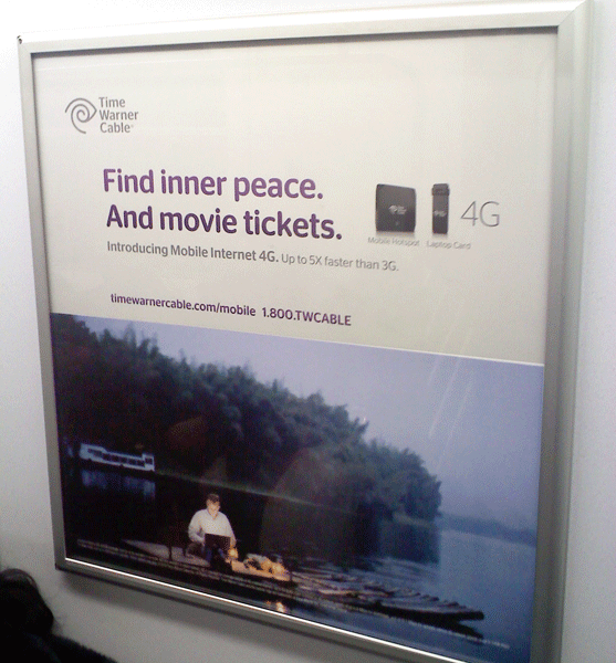 I see this ad and many more just like it in the subways almost every day. Cell phone providers boast that their networks are so powerful that you needn’t ever be without the internet.