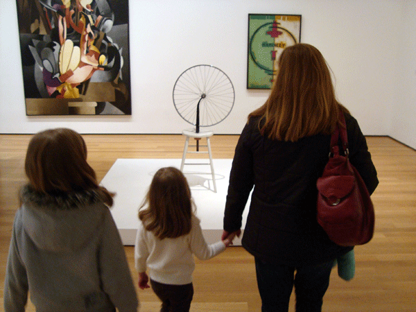 I dragged everyone into the Museum of Modern Art for the afternoon. The Daughters are still too young to have any real appreciation for what they’re seeing—to them, there’s no difference between what they see at MoMA and a poster they’d see in a restaurant—but I’m trying to plant little seeds of corruption. Plus, I get in free with my corporate ID. A real value, since admission is up to $20 bucks per adult!