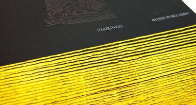 The linocut is printed black-on-black ink for the cover and repeated in white-on-white for the flysheet.