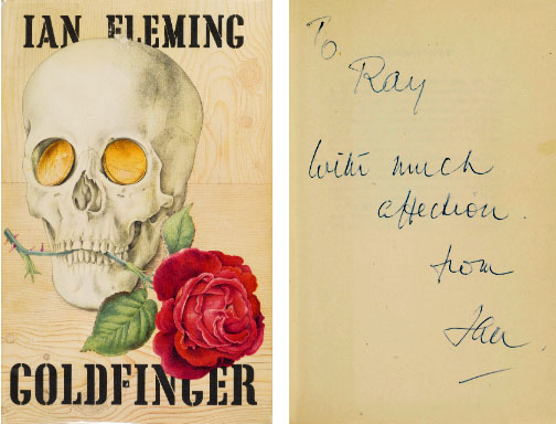 A first edition of Ian Fleming’s Goldfinger, inscribed to Raymond Chandler: To Ray. With much affection. From Ian.