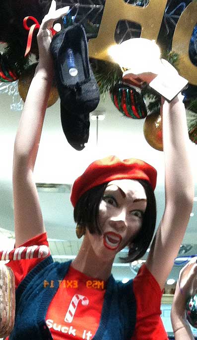 …is actually a monstrous 8-armed shopaholic, grabbing everything off a store shelf that comes within reach of her tentacles. To hell with credit card limits! This is Christmastime in America, baby!