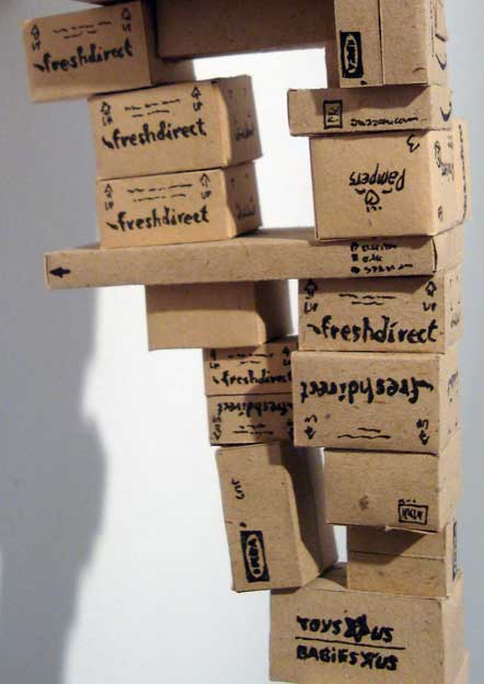 updike-3They’re actually tiny hand painted boxes from retailers like FreshDirect, IKEA, Pampers, etc. I wish I had held a quarter up to give it some scale. These are very, very small works. I like it a lot but I think the piece was $17,000, so you won’t see it in my home. The new puppy would make mincemeat of it.