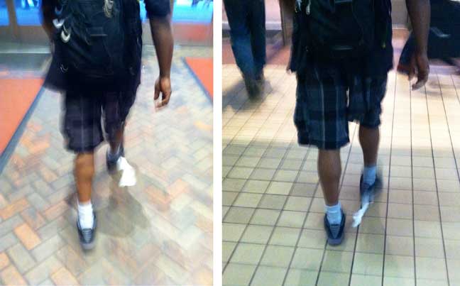 Which is funnier? A man walking out of Port Authority onto 8th Avenue with a long pennant of toilet paper attached to his heel?