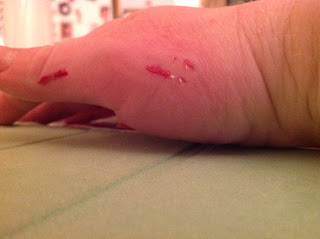 The title of this post is misleading. Our dog is not dead. But if it were up to me, she would be. Look what that little bitch did to my bride:
