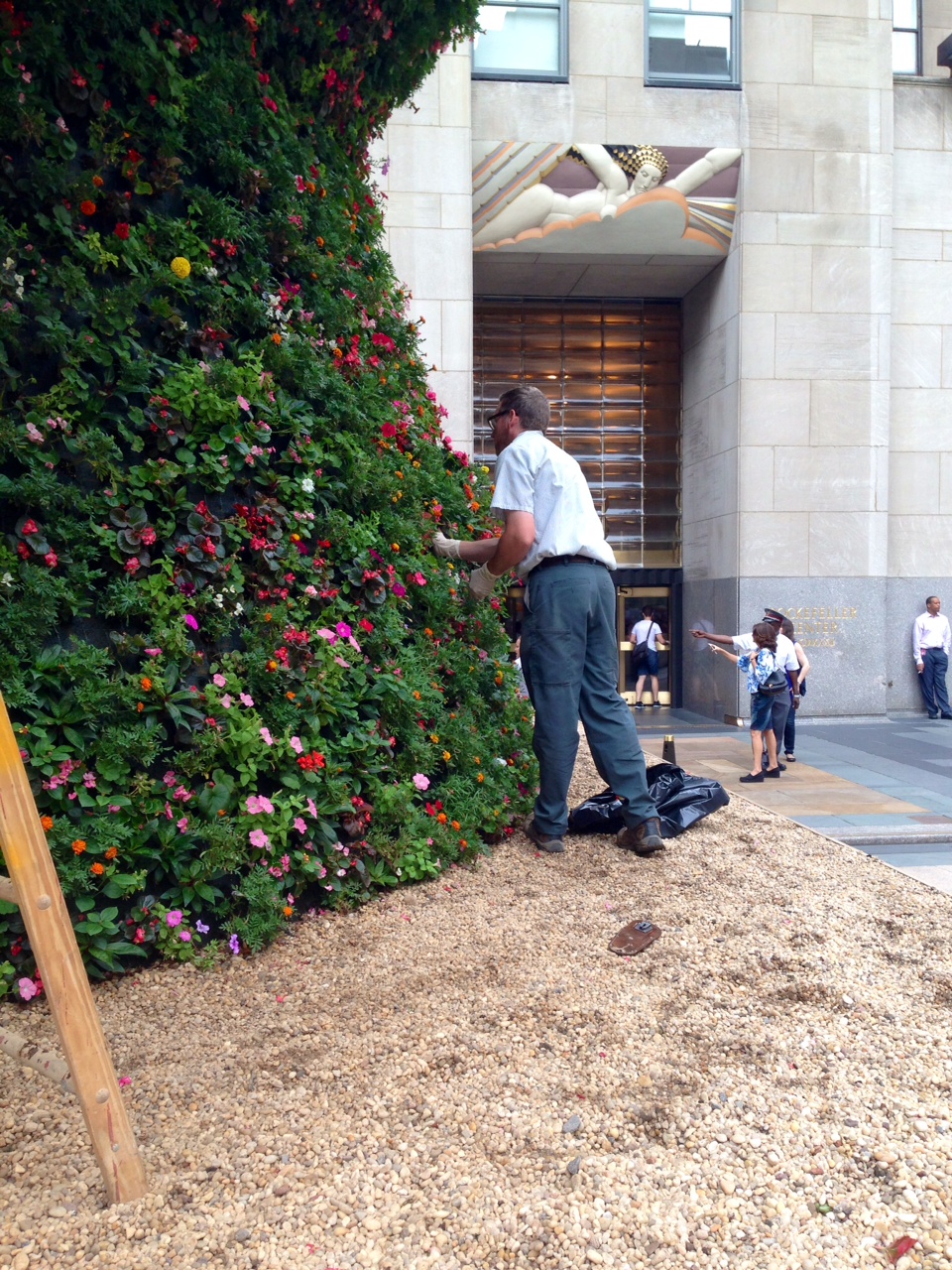 The sculpture is attended to by an army of gardeners. There’s an internal irrigation system that extends to the top of the sculpture. As the summer progresses, it’ll flower becoming fuller and more robust.