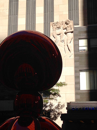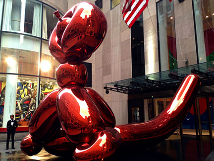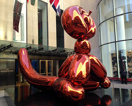 This isn’t the first Koons sculpture to appear in front of Christie’s Rockefeller Center location. A while back, there was a balloon dog and some tulips.