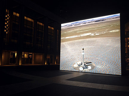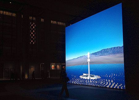 Solar Reserve (Tonopah, Nevada) 2014, by Irish artist John Gerrard, is giant LED wall that re-creates a Nevada solar thermal power plant and the surrounding desert.