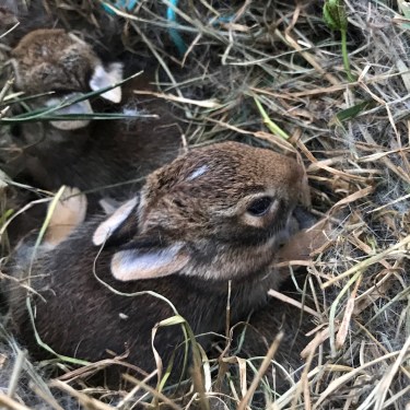 Coco, the evil canine, found this nest. She had one in her mouth but dropped it when it squeaked. I think she mistook it for one of her toys. The previous day, the lawn service guys ran over the nest. Good thing the bunnies are dug into the ground deep enough. What a mess that would’ve been.