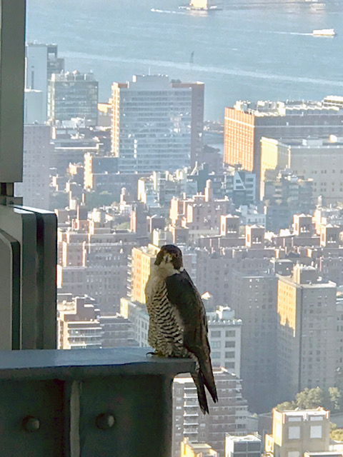 As long as we’re on animals, I’ll rerun these from last year. Manhattan has a few peregrine falcon families. There’s sufficient shelter and an unlimited food supply. I’m up on the 50th floor and they occasionally survey the city outside my window.