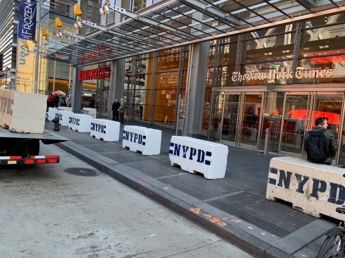 My previous post touched on some concrete barricades that ring my building. They sprung up suddenly. I was told they were in anticipation of the election, which seemed odd, since the election was 2+ weeks away. Several days later, a bomb was sent to CNN, which is just up the street. Election, my ass. They knew something was about to go down.
