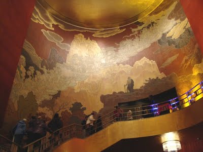 At the top of the staircase is this grand mural. It works in concert with the murals created throughout all of Rockefeller Center. [Fun fact: Nelson Rockefeller had the Diego Rivera mural destroyed because he slipped the image of Lenin into it!]