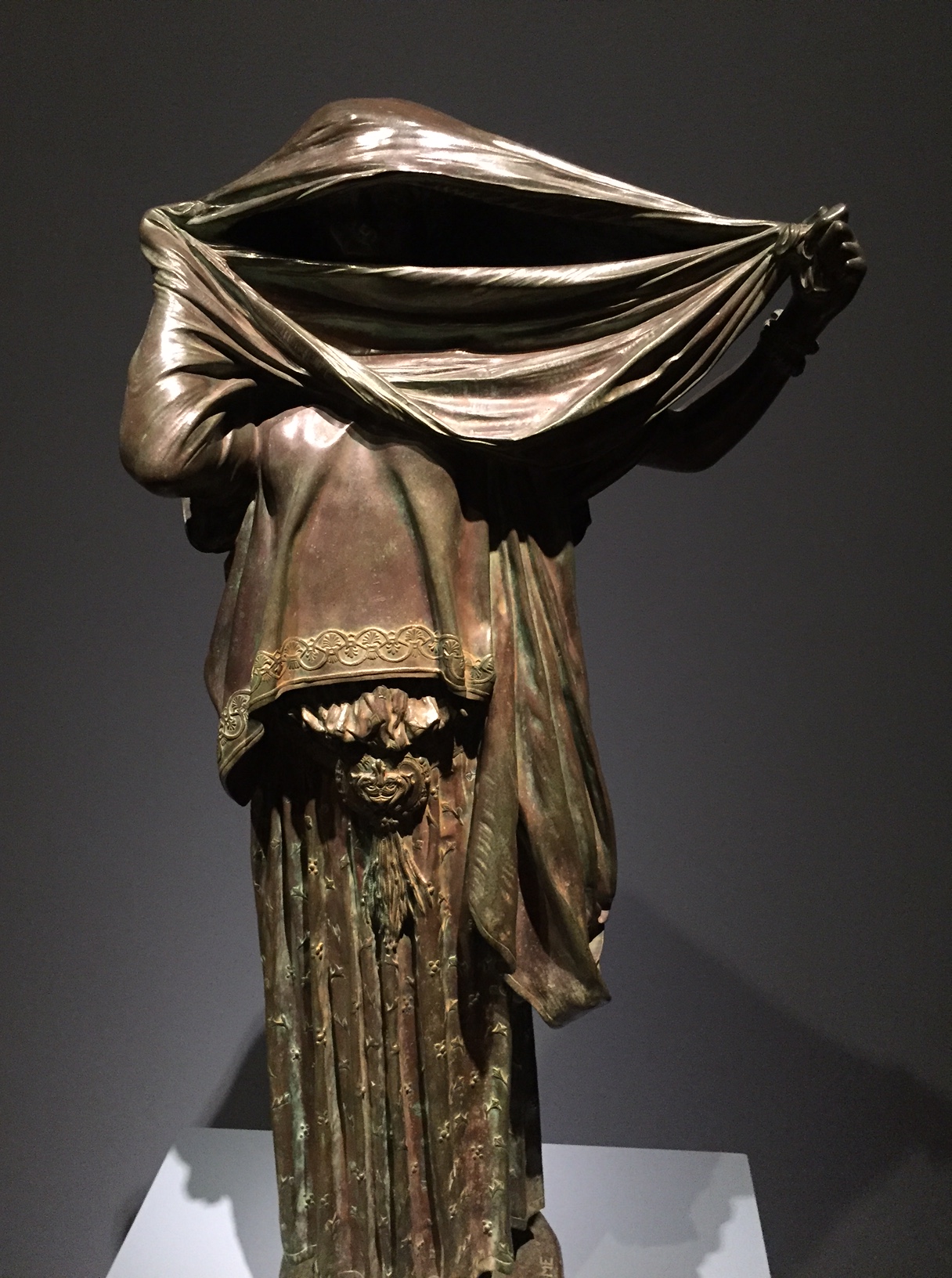 A dark room with a spotlight trained on a small sculpture of a kneeling man/boy. What could possibly be so offensive about that, you might wonder?