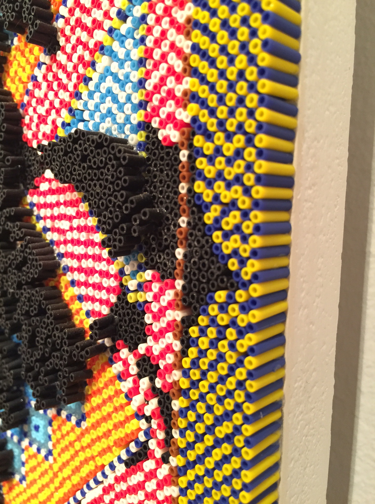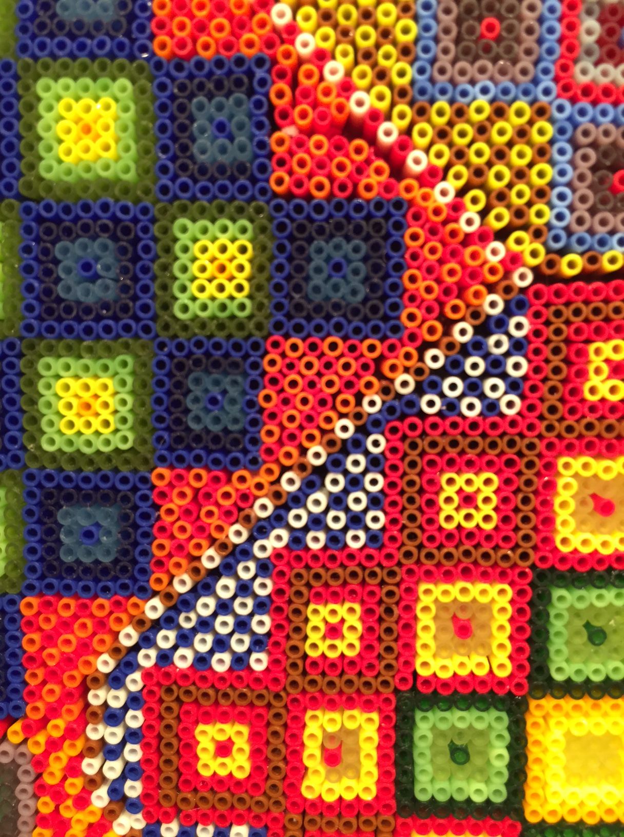 A vivid, beautiful piece. Interesting for its construction. Made from colored and pressed paper pulp. Much more tactile in person. I liked the deckle edges of each section.