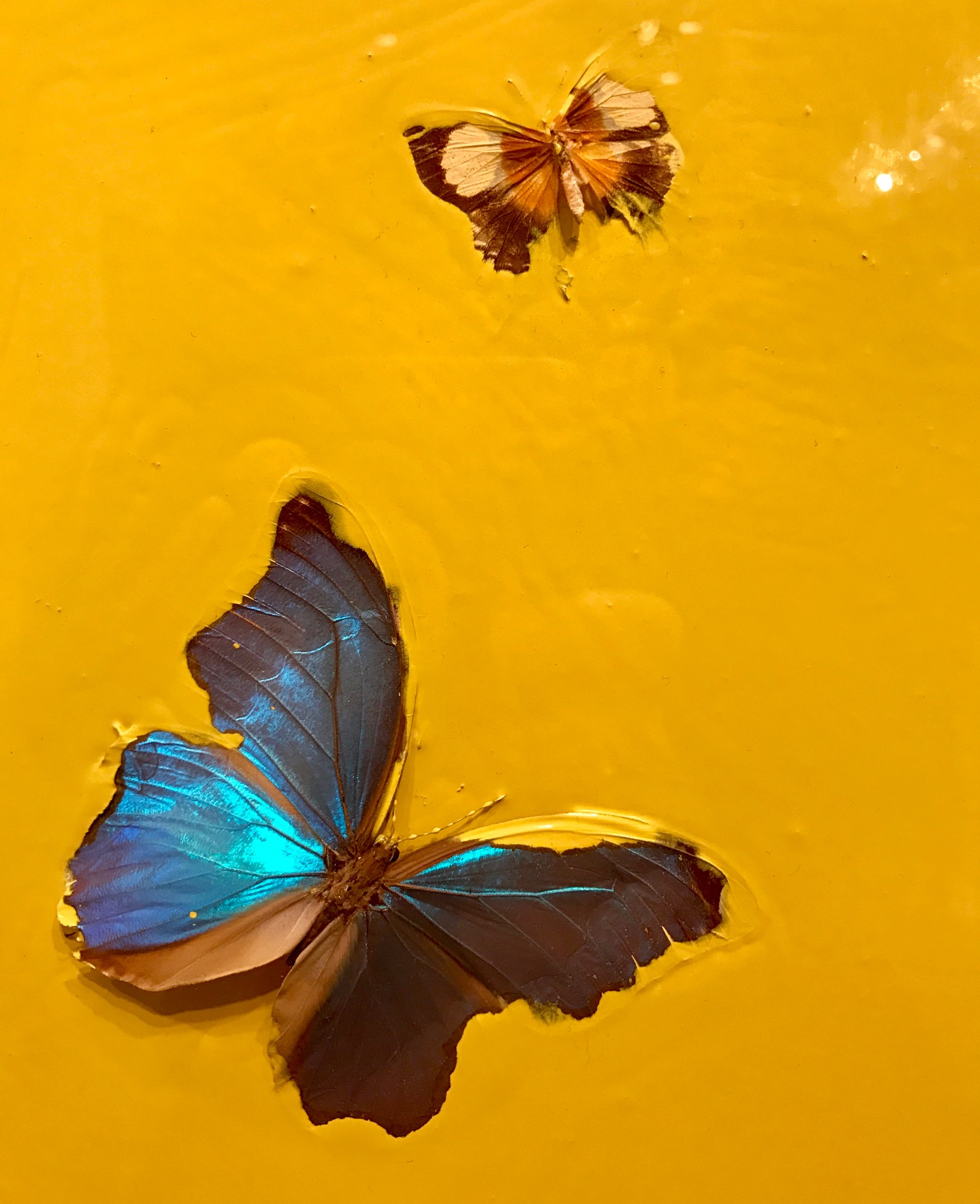 Glass, painted steel, silicone, acrylic, plastic, lamb and formaldehyde