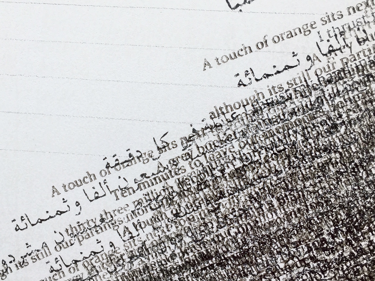 Printed words layered until they merge into each other. I couldn’t make sense of what it said, which I imagine is intentional. The message is the pattern, not what composes the pattern. I think.