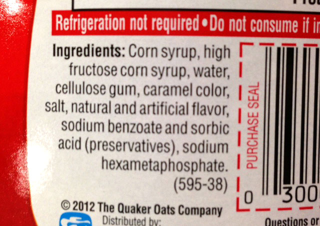 It’s all corn syrup + crap. My Bride brought home some authentic Vermont maple syrup and I’ve been so brainwashed over the years by consuming this rotten corn by-product that the real thing tasted kind of odd to me. And I thought it was thin, too. Thank you, Quaker Oats, for ruining maple syrup for me!